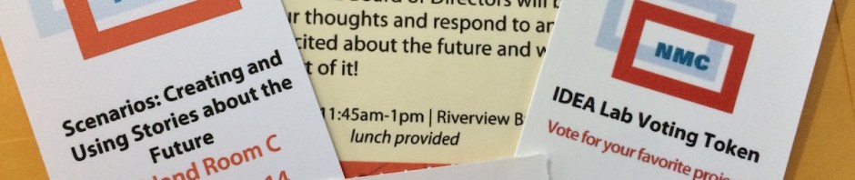 While at the conference, it was energizing to realize that I was not alone in this quest to shift from IF to WHEN. The NMC Town Hall meeting was an effort to collectively plan and envision future directions for the NMC organization. The sessions relating to the Horizon Report allowed for conversations about when new trends and developments will be realized in education. One session shared the newly released digital version of the NMC Horizon Report: 2016 Higher Education Edition shifting thinking from if there is an interactive, digital version of the report to when there is an app for that. Many conversations revealed how planning and collaboration can support the shift to WHEN. Videos of keynotes from the conference can inform your own shift in thinking. Bryan Alexander’s closing keynote is particularly informative in shifting thinking away from IF and into the realm of WHEN.